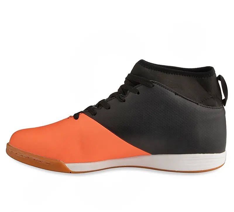 رویه کفش از چرم مصنوعی PU با کیفیت ساخته شده که مقاومت بالایی در برابر سایش و اصطکاک با کف سالن دارد. این متریال علاوهبر دوام مناسب، به کنترل بهتر توپ نیز کمک میکند. طراحی ساقدار کفش بهصورت هدفمند انجام شده تا از مچ پا در برابر پیچخوردگی و آسیبهای احتمالی ناشی از تغییر جهتهای سریع محافظت کند و ثبات بیشتری در حرکات انفجاری ایجاد شود. در بخش ساق از پارچه کشی نرم و مقاوم استفاده شده که علاوه بر افزایش انعطافپذیری، تهویه مناسبتری برای پا فراهم میکند و احساس راحتی بیشتری در طول بازی به همراه دارد.